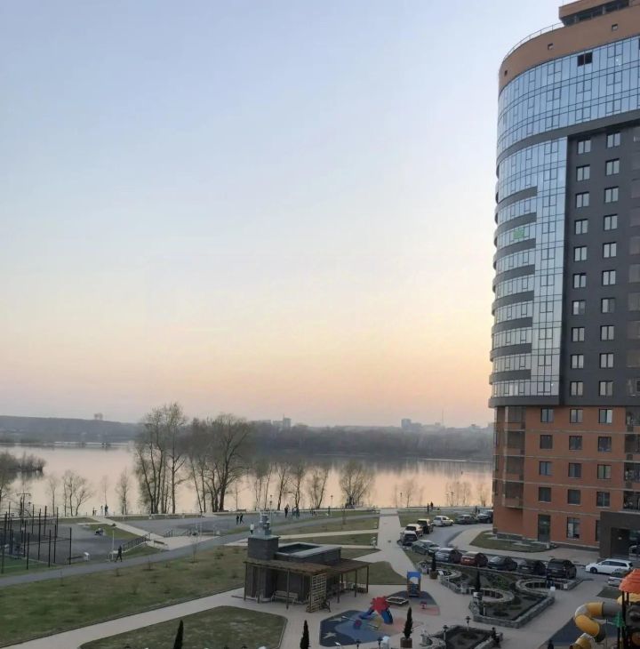 Балкон с красивым видом на реку и двор.