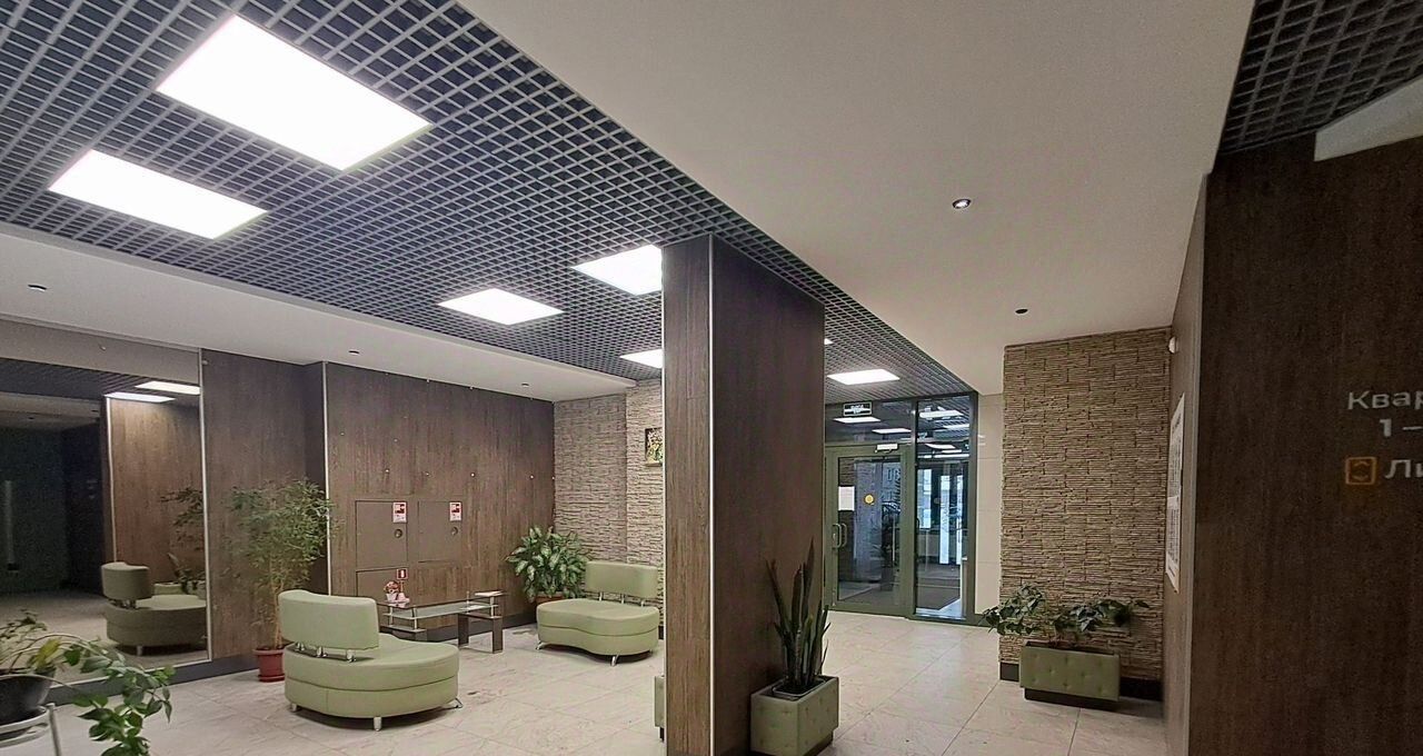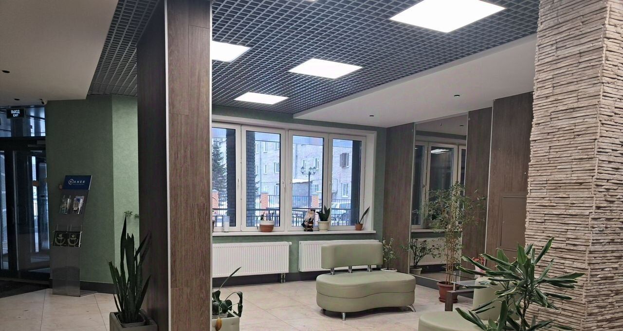 Дом встречает красивым парадным подъездом, просторным и нарядным холлом с мягкими диванами, зеркалами, зелёными растениями.