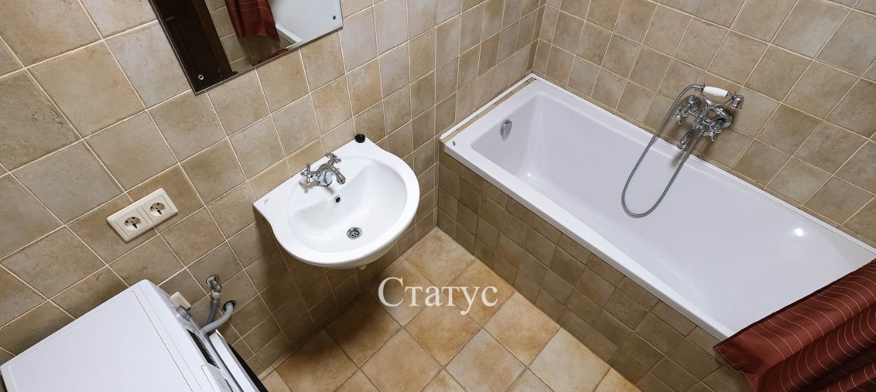 На полу — плитка, на стенах — качественный кафель в санузле