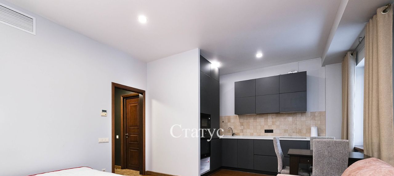 Зонирование: спальня-гостиная + кухня с выделенной обеденной зоной