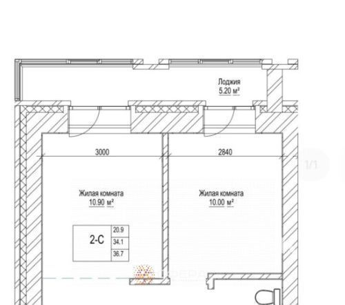 1-комнатная квартира: Новосибирск, Вокзальная магистраль, 11 (33.1 м²)