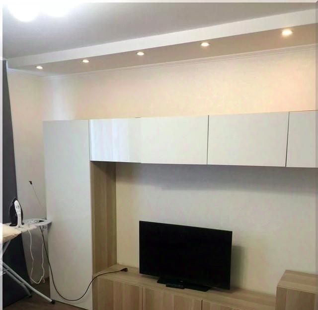 В квартире выполнен качественный евроремонт и установлена необходимая мебель как в комнате, так и на кухне. Из техники в вашем распоряжении есть телевизор, холодильник и стиральная машина. Высота потолков составляет 2.5 метра, что создаёт ощущение простора. Из дополнительных удобств — балкон, где можно отдохнуть, и мусоропровод, что делает вынос мусора простым и удобным.