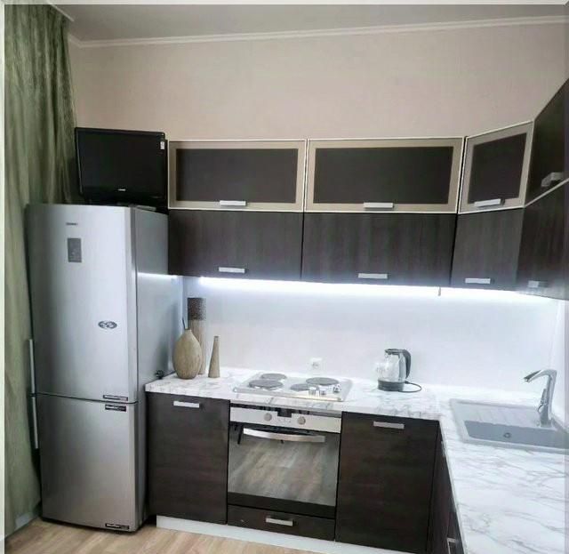 Сдаётся уютная однокомнатная квартира с евроремонтом в кирпичном доме, построенном в 2010 году. Общая площадь составляет 55 кв. м, жилая — 40 кв. м, а кухня занимает 11 кв. м. Квартира находится на 10 этаже 16-этажного дома, окна выходят во двор, что создаёт атмосферу тишины и уюта. Высота потолков — 2.5 метра.