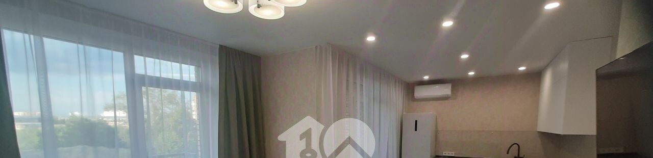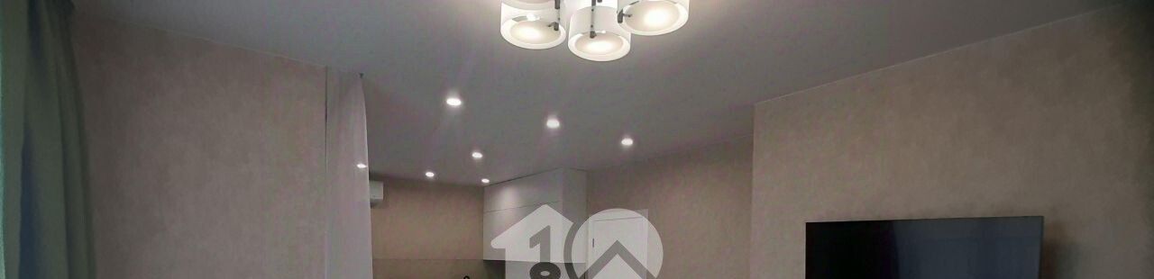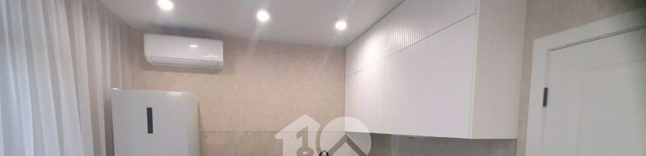 Ремонт выполнен в современном стиле с использованием качественных материалов. Кухня оборудована всей необходимой техникой, включая посудомоечную машину, что делает процесс приготовления пищи удобным и приятным.