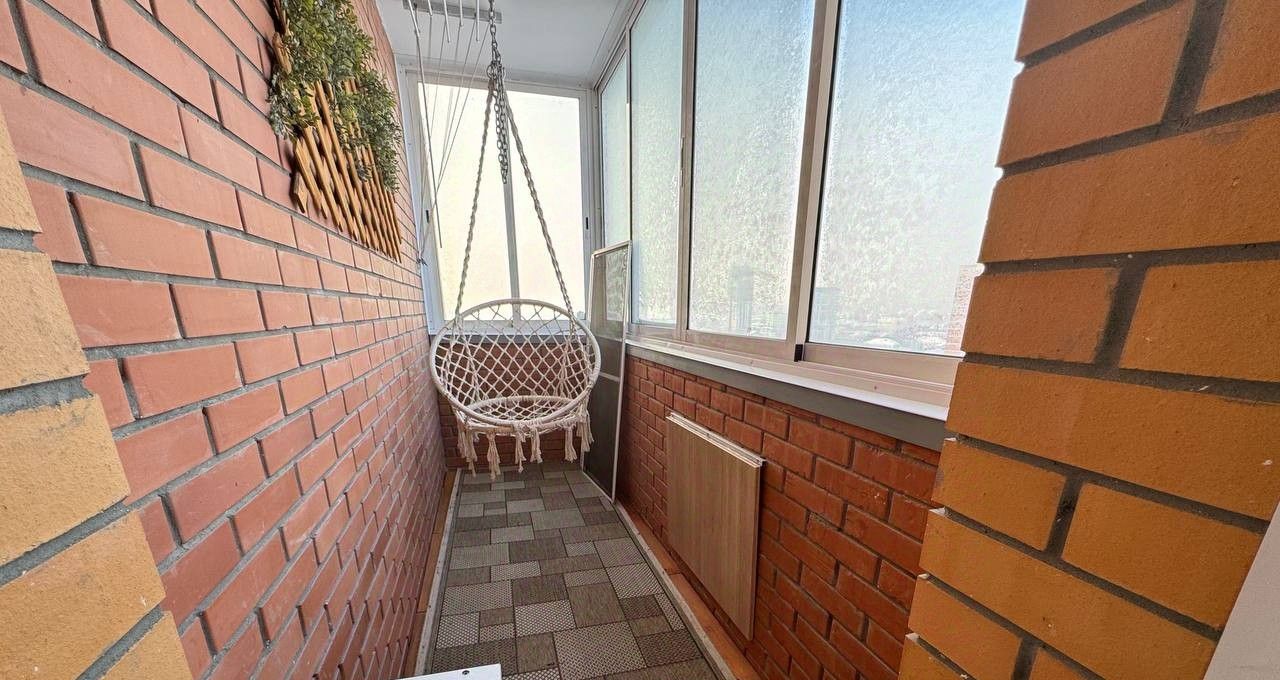 На балконе оборудована полноценная зона отдыха, установлена качель и столик