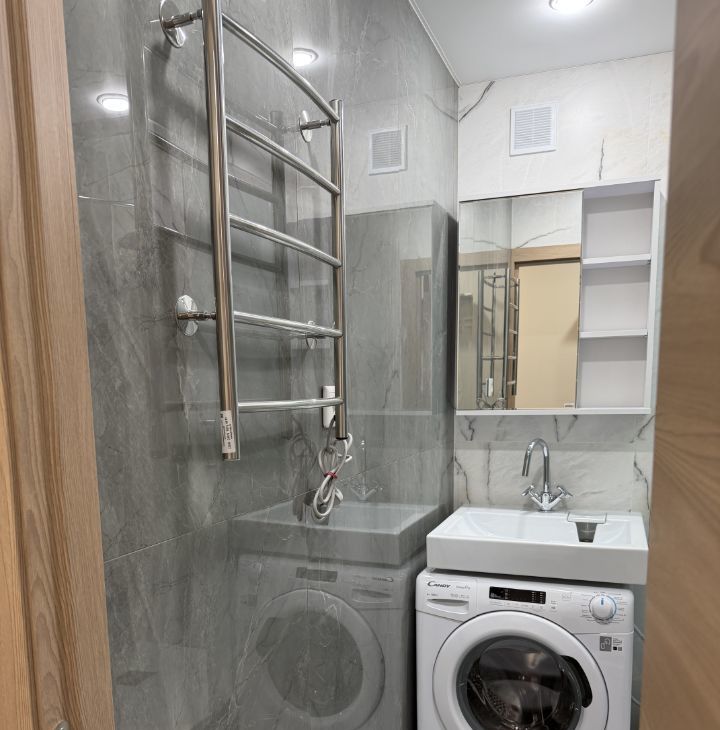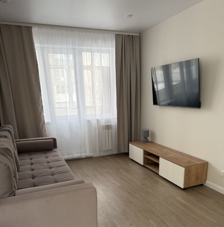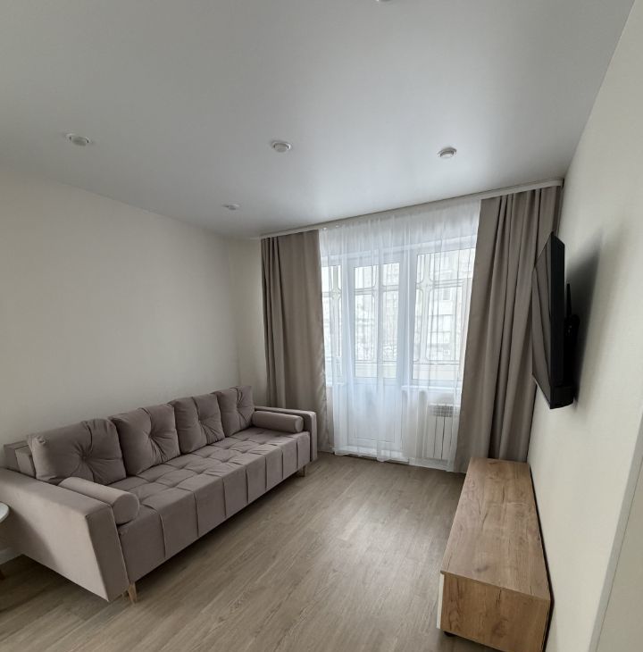В квартире сделан свежий евроремонт, после которого в ней никто не жил. Обстановка включает в себя всю необходимую мебель как на кухне, так и в комнате. Для вашего комфорта предусмотрена современная техника: холодильник, телевизор и стиральная машина. Ванная комната оборудована душевой кабиной. Окна квартиры выходят во двор, что обеспечивает тишину и спокойствие. Также есть балкон, где можно насладиться свежим воздухом.