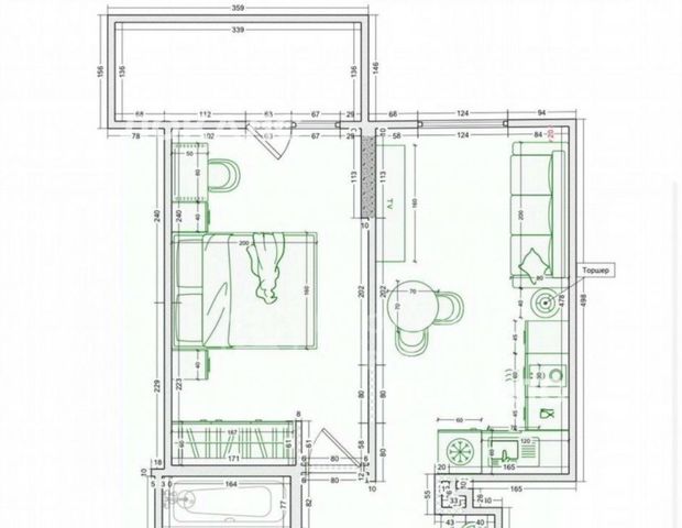 Простор & Функциональность: Умная планировка! Просторная кухня (место для готовки и завтраков) и отдельная светлая спальня личное пространство гарантировано. Общая площадь 34.6 м² использована с умом.