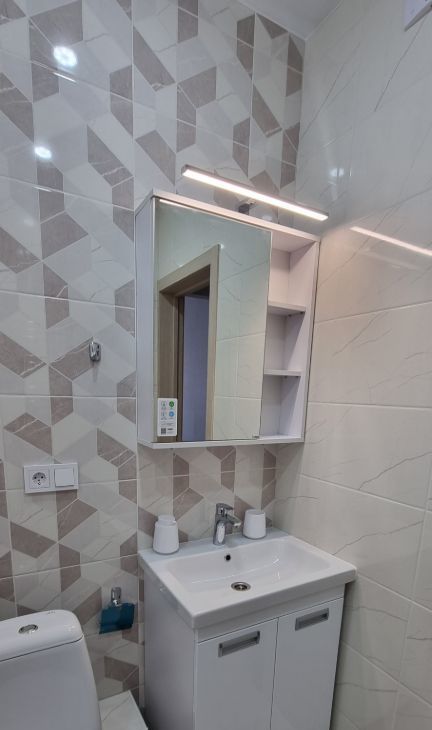 В квартире выполнен евро ремонт. Просторная жилая комната площадью 16 м², кухня размером 14 м². Санузел совмещенный. Балкон добавляет дополнительное пространство для отдыха.