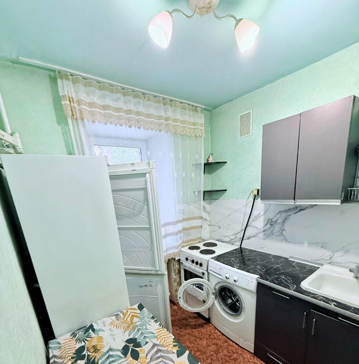 В квартире имеется все самое необходимое для проживания: холодильник, плита, стиральная машина, микроволновая печь, плательный шкаф и диванчик.