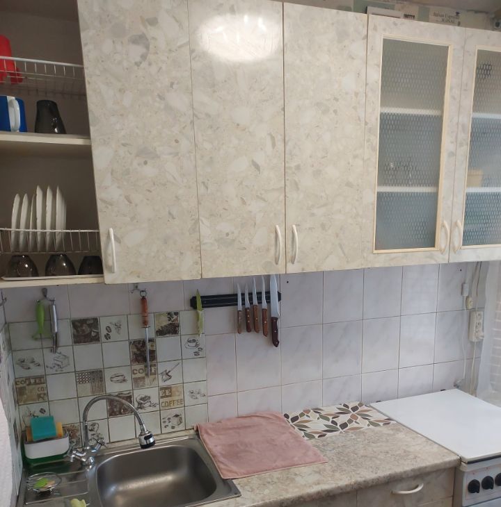 Квартира полностью готова к проживанию. В комнате и на кухне есть вся необходимая мебель. Окна выходят во двор, поэтому в квартире тихо и уютно.