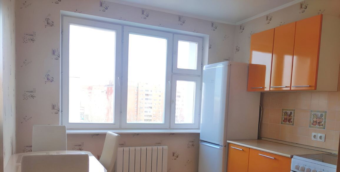 Сдаётся уютная однокомнатная квартира в современном монолитном доме 2009 года постройки. Общая площадь квартиры составляет 34,6 кв. м, из которых 14 кв. м жилая площадь, а кухня занимает 12 кв. м. Квартира находится на 8 этаже 17-этажного дома, а окна выходят во двор, что гарантирует тишину и спокойствие.