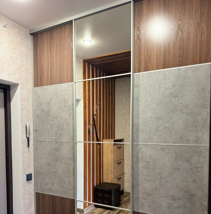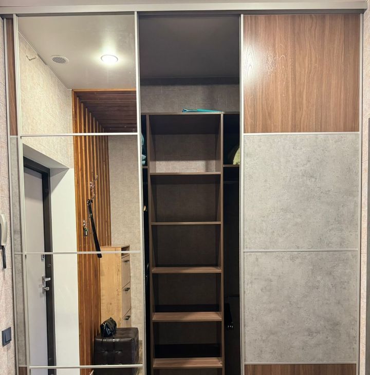 Оборудованная гардеробная, двухспальная кровать, диван трансформер..