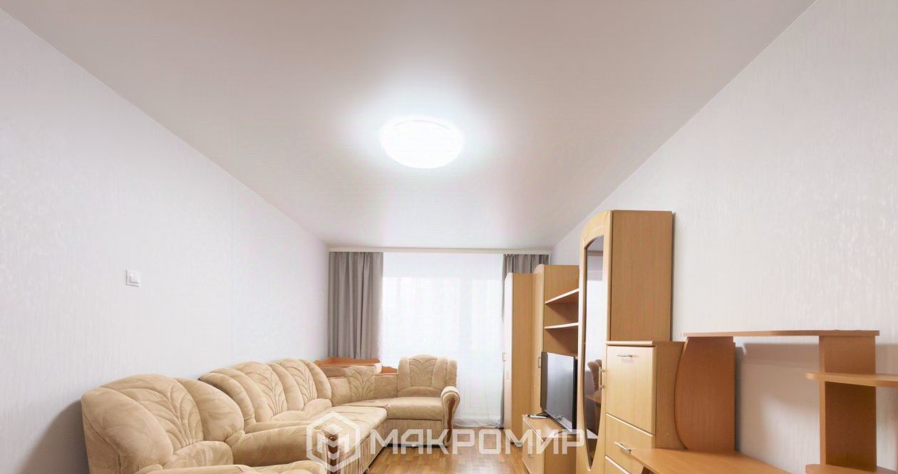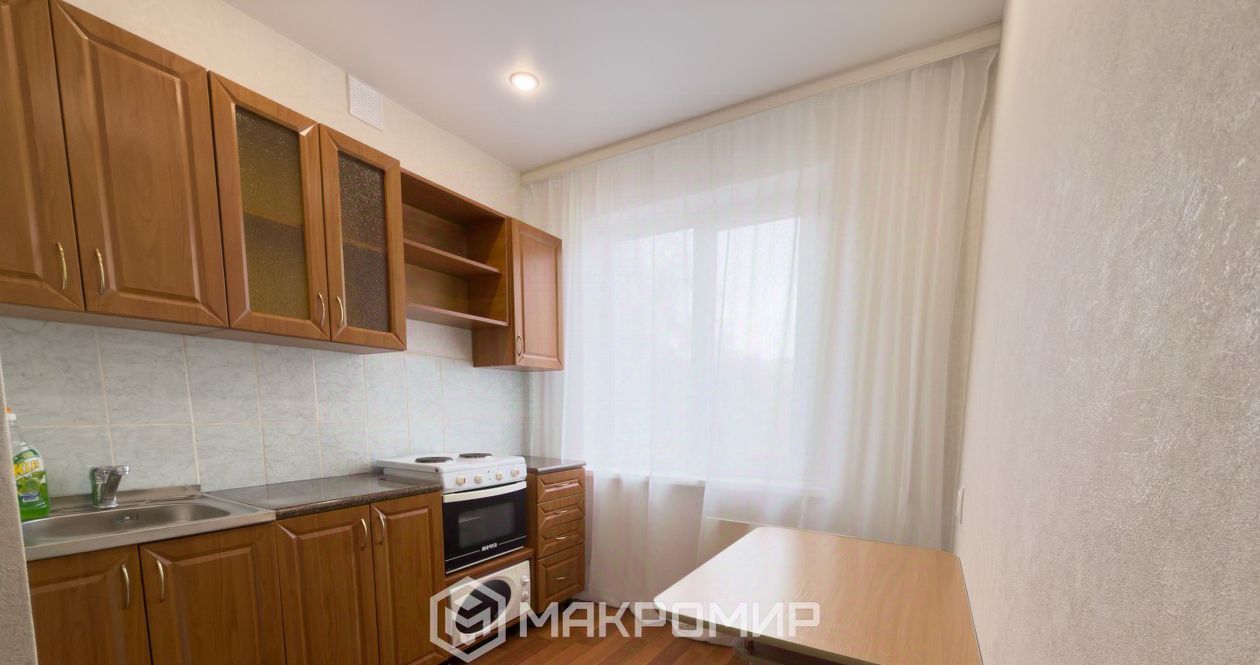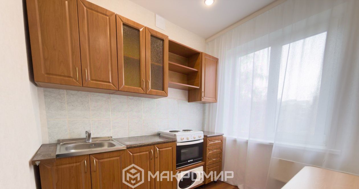 Бытовая техника и мебель: есть все необходимое для жизни — удобный кухонный гарнитур, электрическая плита с духовкой, микроволновка, холодильник, обеденный стол, диван, вместительные шкафы для одежды, телевизор.
