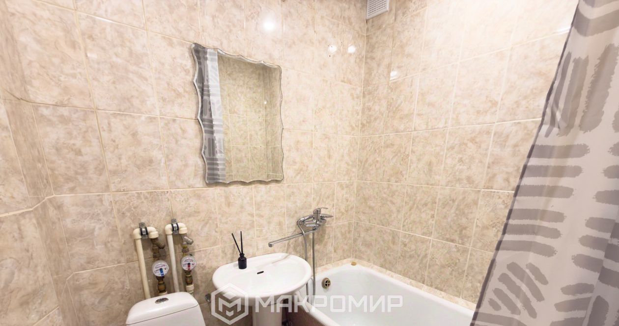 Ванная комната в отличном состоянии — чистая ванна (без трещин или сколов эмали), кафель от пола до потолка.