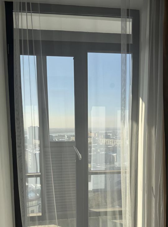 Панорамные окна от застройщика. Полностью подавляют шум с улицы. Выход на просторную лоджию из обеих комнат. Зимой в квартире тепло, нет сквозняков, температура радиаторов регулируется индивидуально в каждой комнате для Вашего комфорта.