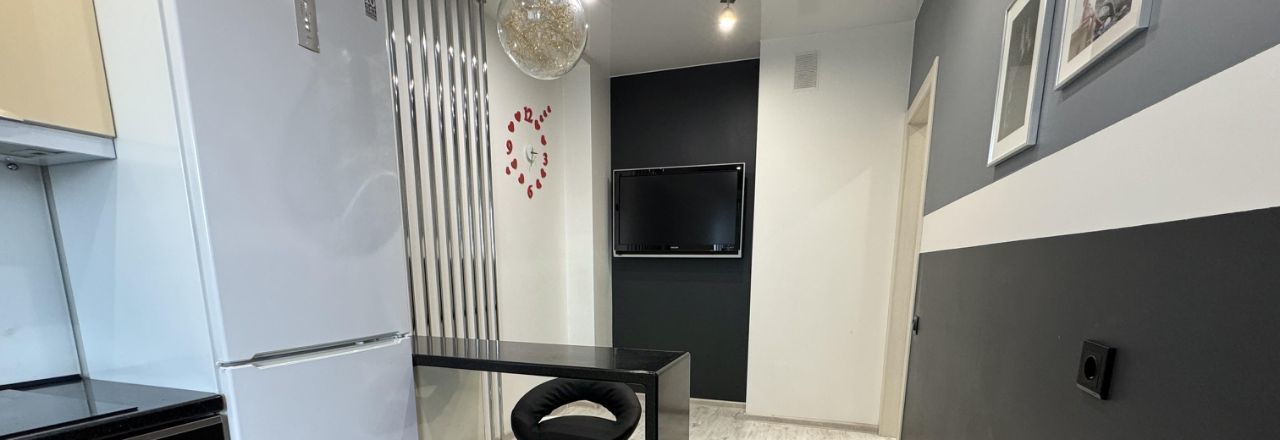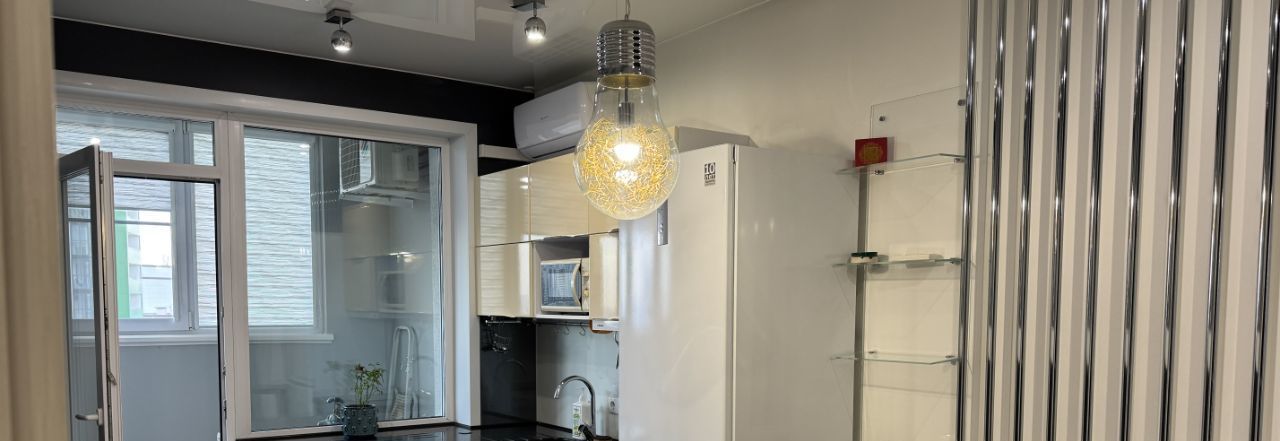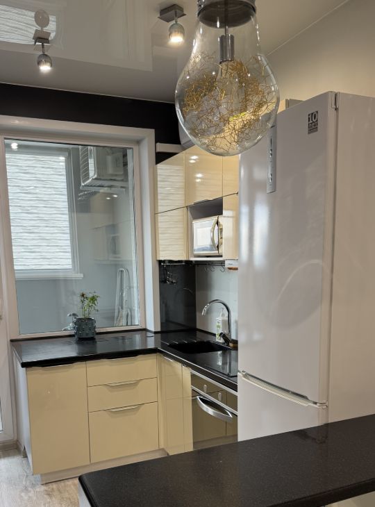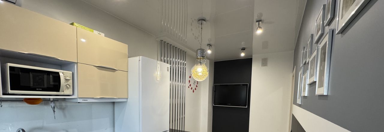 Просторная кухня площадью 12 м² оснащена всем необходимым: холодильник, микроволновая печь, варочная панель и духовой шкаф, также на кухне установлен кондиционер и телевизор с возможностью подключиться через тв-приставку (Ростелеком).