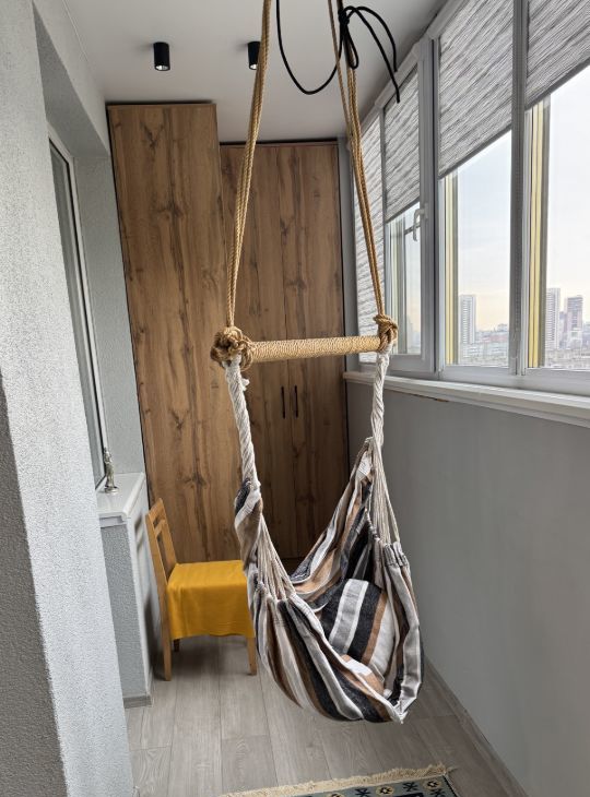 Огромная утепленная лоджия, заменены окна от застройщика на окна с тройным стеклопакетом, также установлен теплый пол, что дает возможность в холодное время использовать лоджию, как дополнительную комнату.
