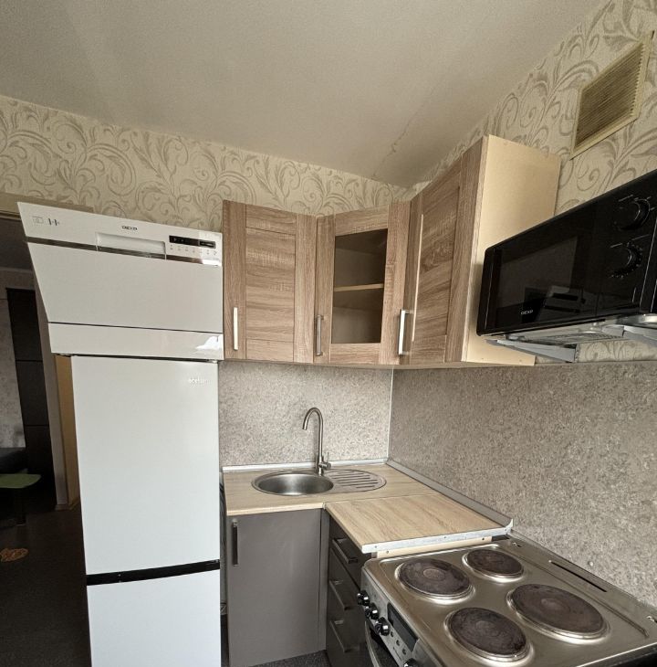 В квартире все что на фото - мебель, техника. Диван и матрас после химчистки. Новые холодильник и микроволновка. Есть посудомойка.