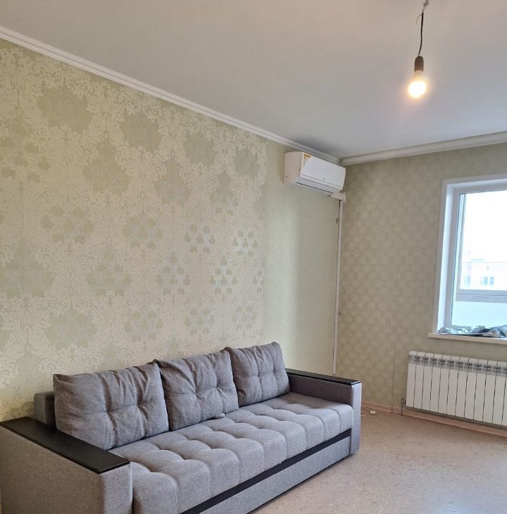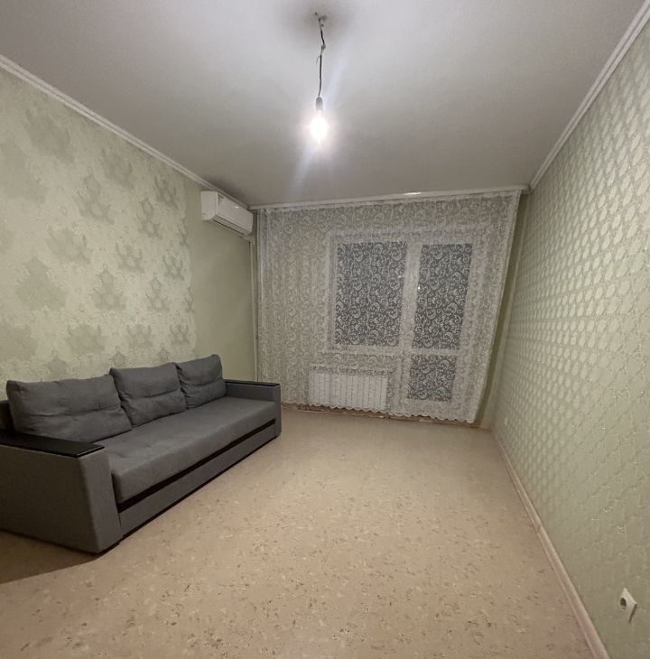 просторная. Чистая светлая,на полу пробка. сейчас серый диван.