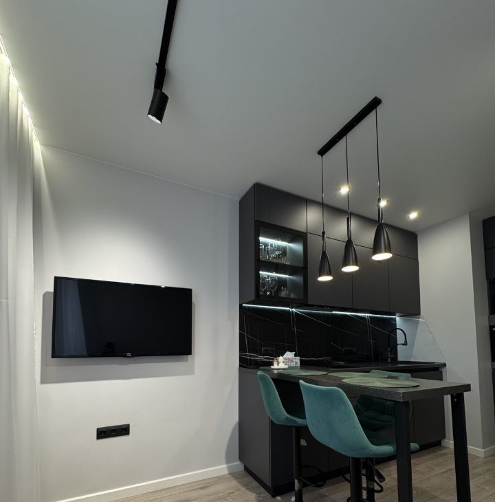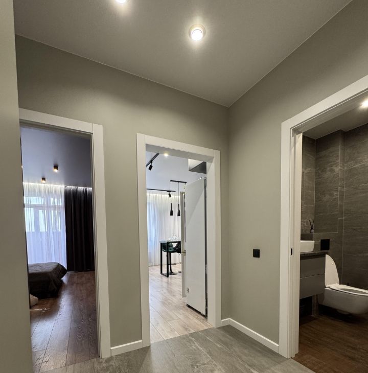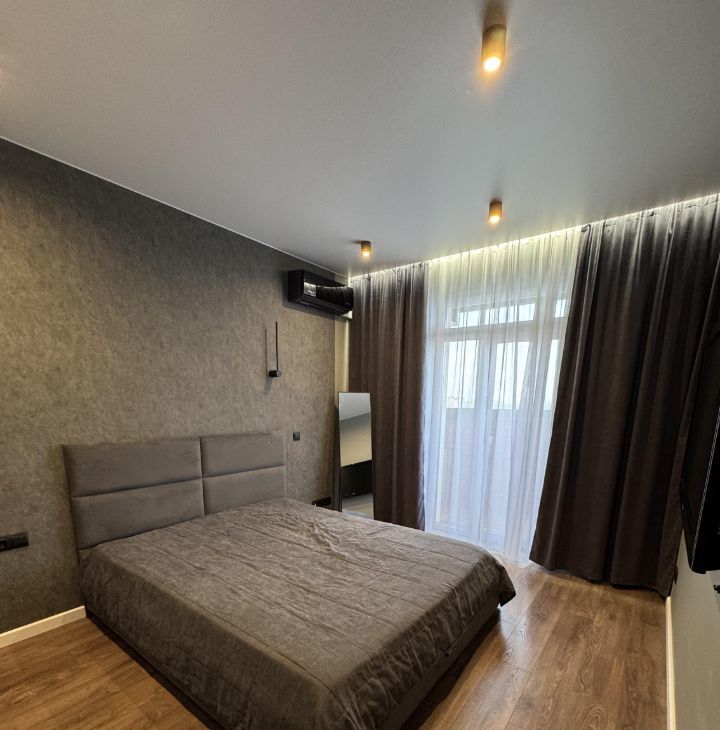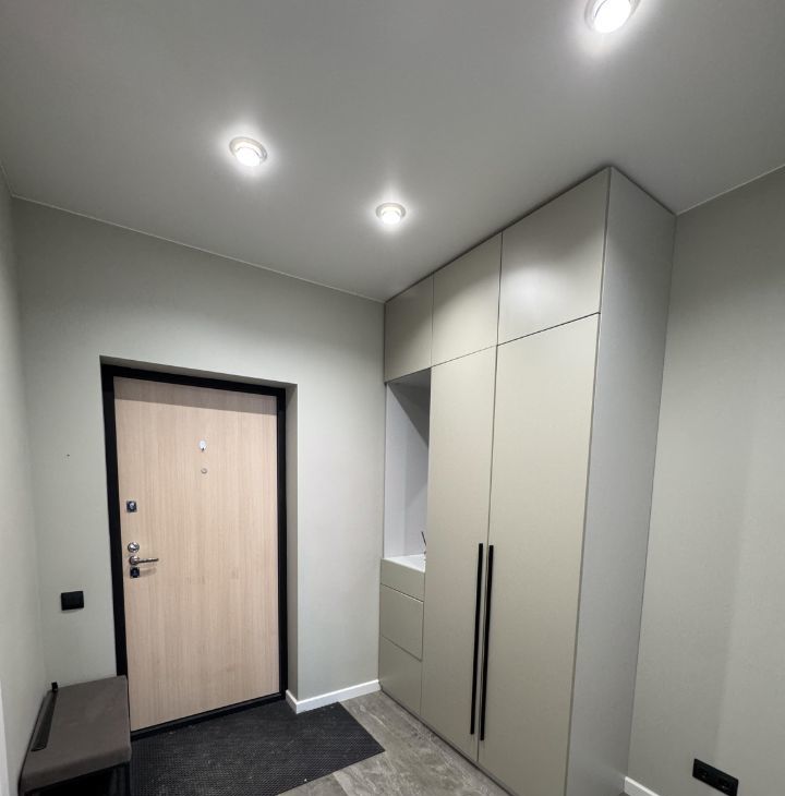 Квартира с продуманным дизайнерским ремонтом — аккуратный, современный интерьер, в котором комфортно жить каждый день. Пространство грамотно организовано: много мест для хранения (шкаф в коридоре и отдельный в спальне), удобная и функциональная кухня.