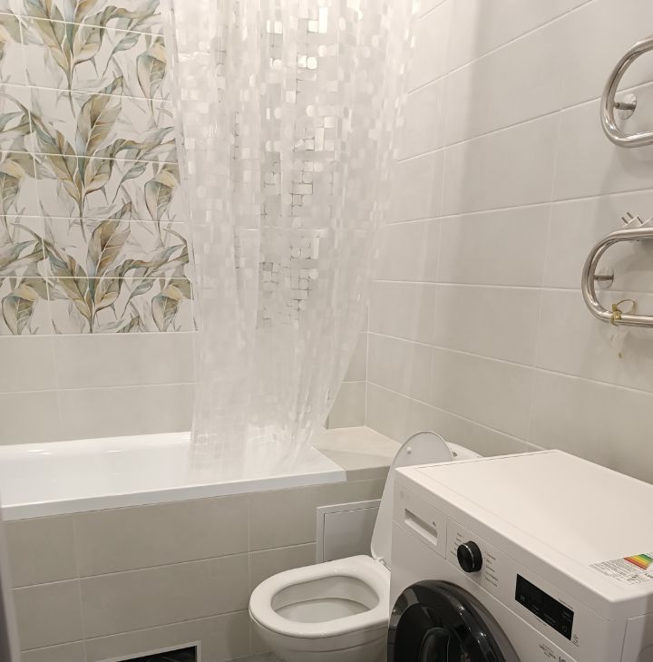 В квартире сделан дизайнерский ремонт, что создает атмосферу уюта и современности. В комнате и на кухне есть вся необходимая мебель. В наличии вся необходимая техника: холодильник, телевизор и стиральная машина. Санузел совмещен и оборудован ванной. На просторной лоджии можно наслаждаться свежим воздухом.
