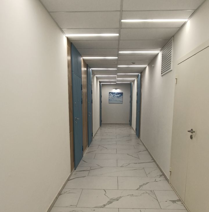 Дом находится в районе с развитой инфраструктурой. Рядом расположены школы, детские сады, клиники и магазины, что делает проживание здесь очень удобным.