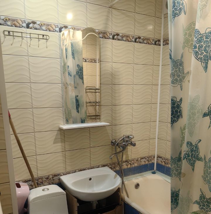 В квартире косметический ремонт. Она полностью меблирована: в комнате и на кухне есть необходимая мебель для комфортного проживания. Из техники в вашем распоряжении кондиционер, холодильник и стиральная машина. Ванная комната оснащена ванной, поэтому можно расслабиться после рабочего дня. Окна квартиры выходят во двор, поэтому в ней всегда тихо и спокойно.