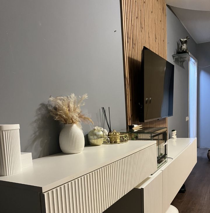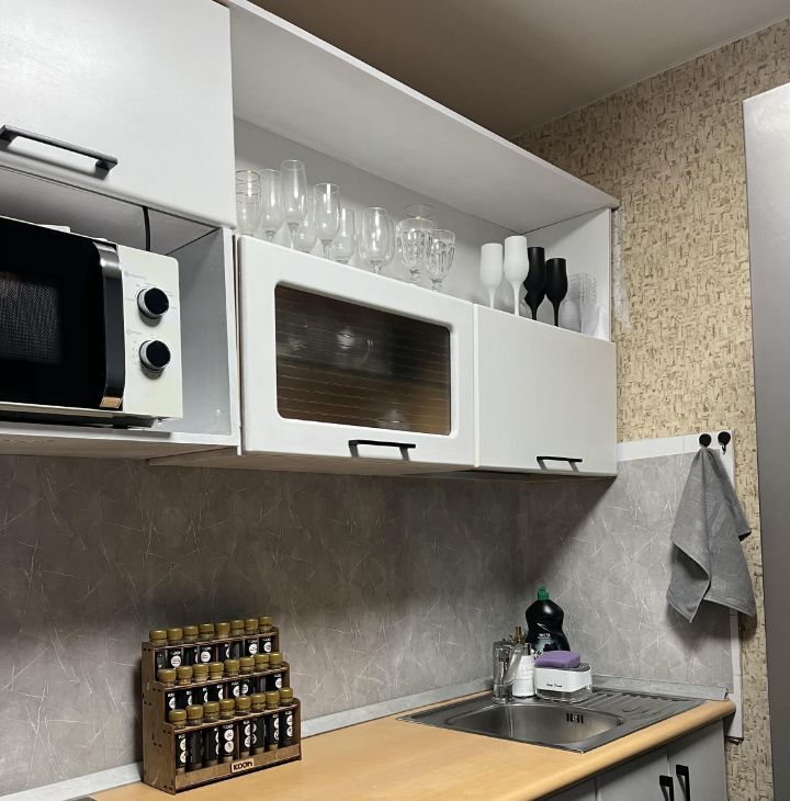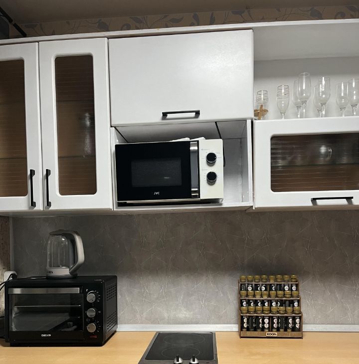 Квартира оснащена всем необходимым для проживания: большой вместительный шкаф для одежды, зеркальный шкаф-купе для верхней одежды и обуви, диван, который раскладывается в двуспальную кровать, а также техникой: робот -пылесос с функцией влажной уборки, телевизор, стиральная машина, утюг, плита, небольшой духовой шкаф, СВЧ, чайник, холодильник, мульти пекарь.Есть вся необходимая посуда для приготовления и употребления пищи.