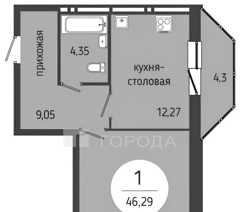 1-к кв. Новосибирская область, Новосибирск ул. Дмитрия Шамшурина, 1 (43.0 м²)