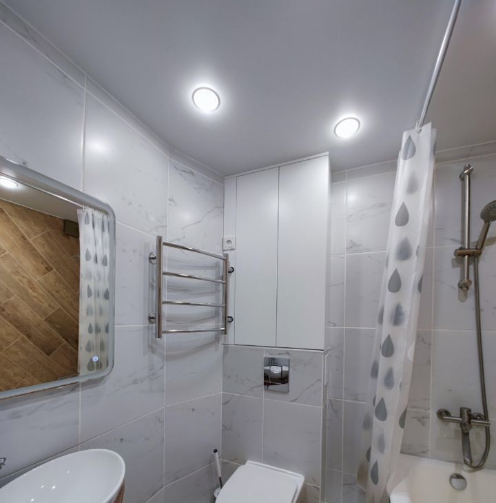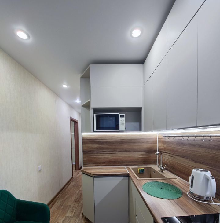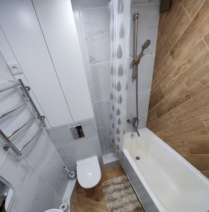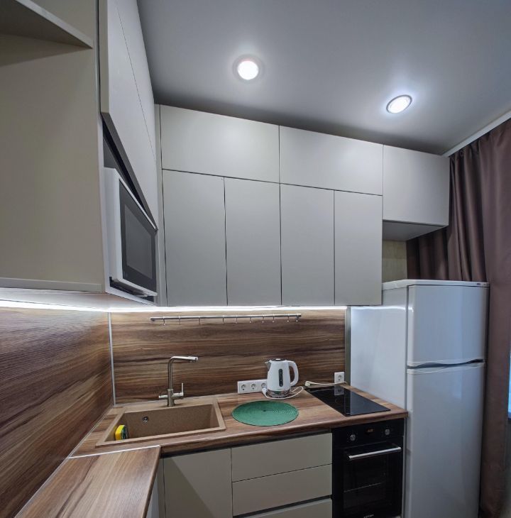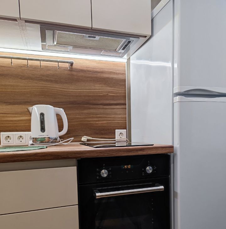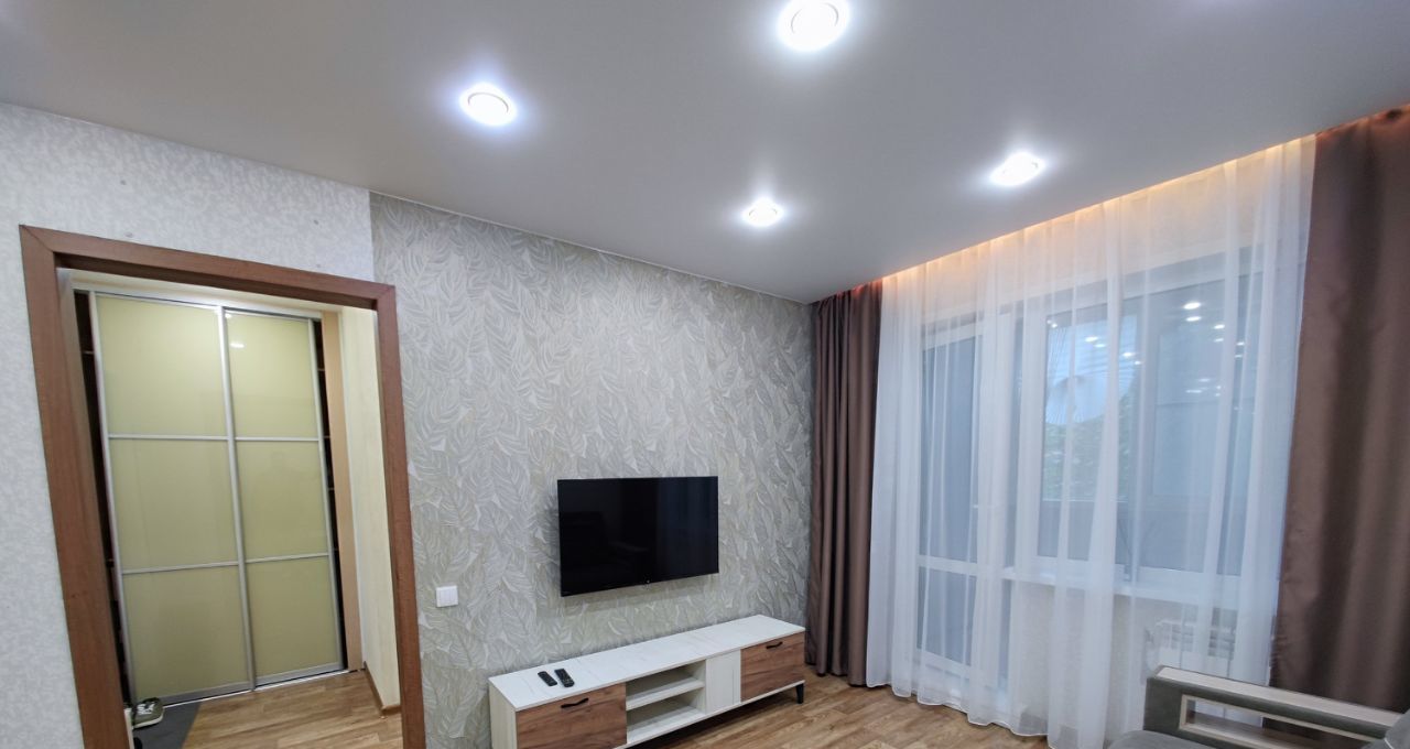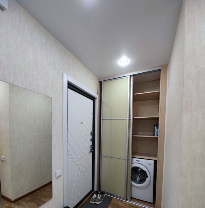 Квартира полностью готова для комфортного проживания. Здесь есть вся необходимая мебель как на кухне, так и в комнате. Совмещенный санузел оборудован ванной. Из техники в вашем распоряжении кондиционер, холодильник, телевизор и стиральная машина.