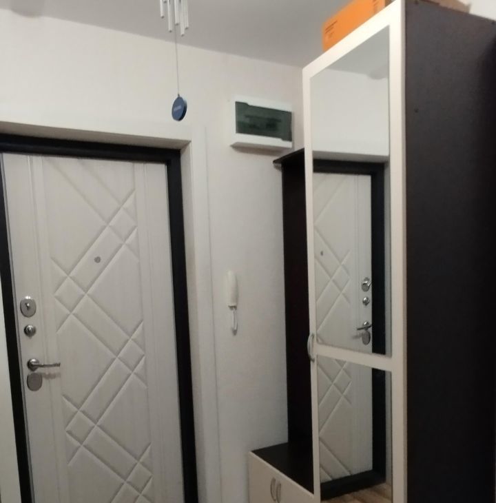 Входная дверь заменена на более надёжную с шумоизоляцией. Прихожая подбиралась именно для параметров этой квартиры ( остаётся покупателю).