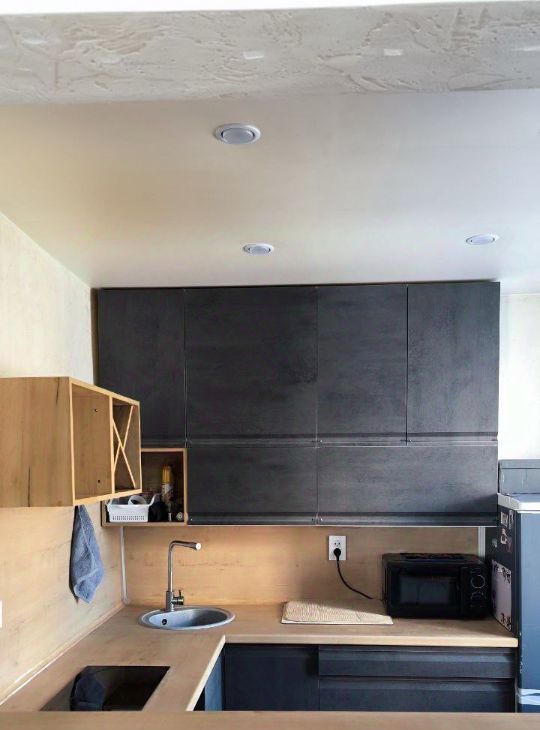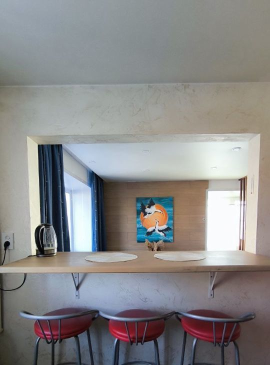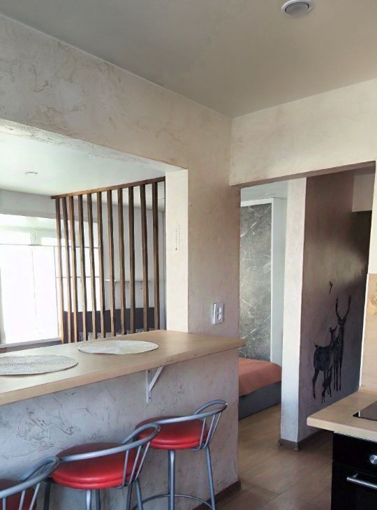 Ремонт: Современный, на стенах краска и декоративная штукатурка. Жили сами и делали для себя. Пол — ламинат.