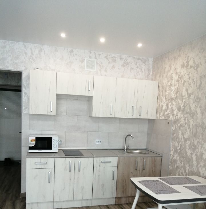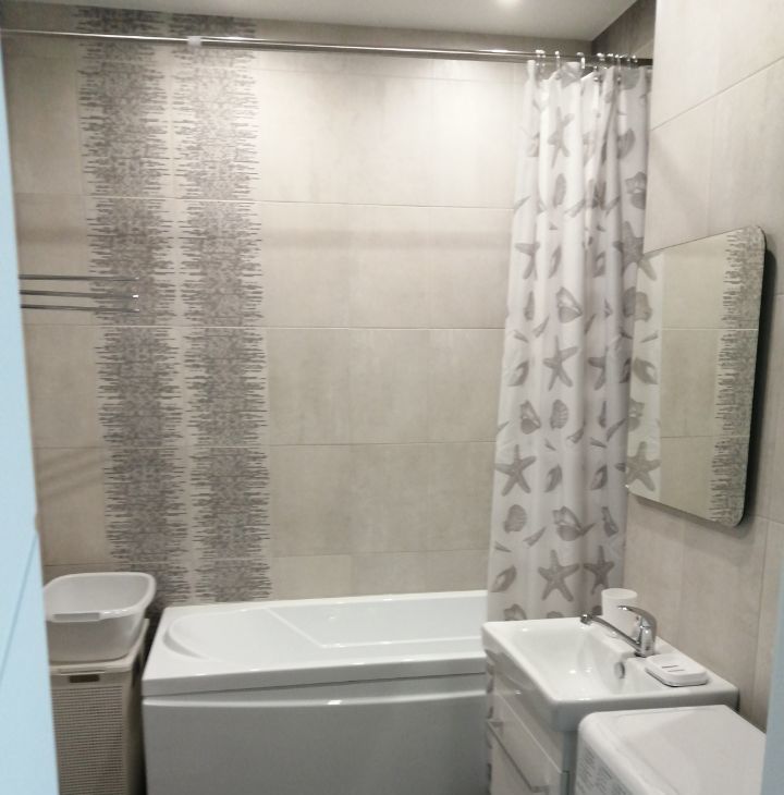 В квартире сделан современный ремонт. В комнате и на кухне есть вся необходимая мебель для комфортного проживания. На кухне установлен холодильник, а также в наличии телевизор и стиральная машина. Санузел совмещенный, с современной ванной.