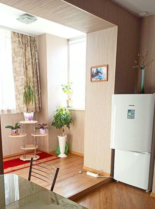 - Из кухни выход на большую утепленную лоджию - 11 кв. м, с тёплым полом, лоджию можно использовать как полноценную комнату для сна и отдыха.