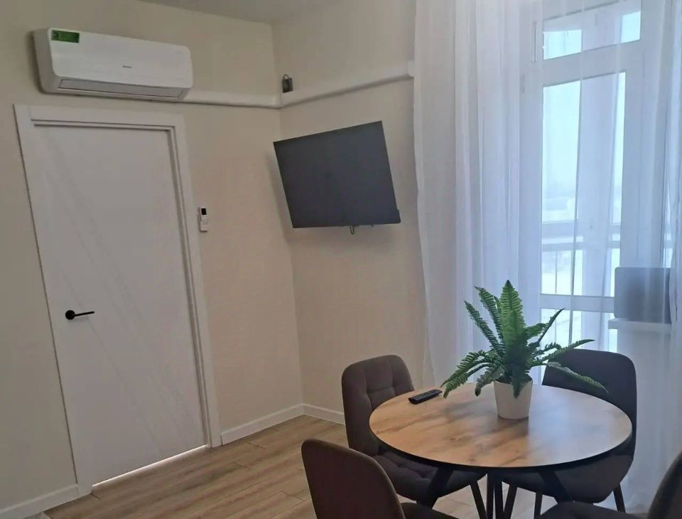 В комнате и на кухне установлена современная мебель.