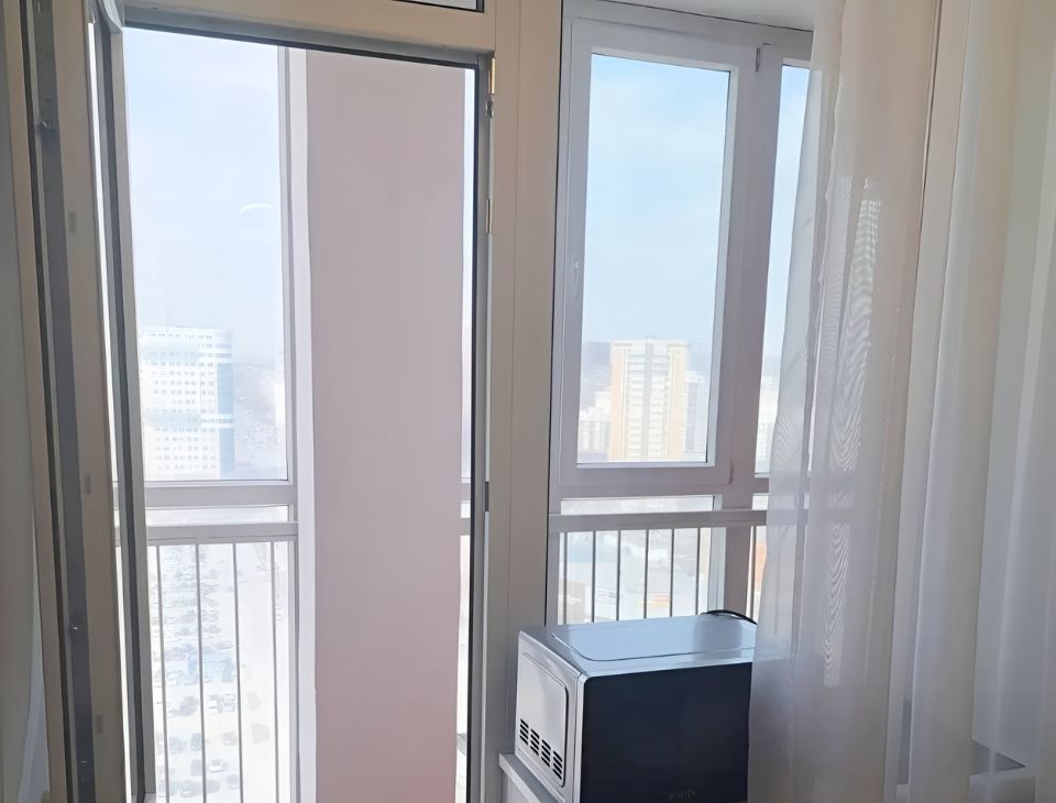 Общая площадь квартиры составляет 45 кв. м, она расположена на 18 этаже из 22. Высота потолков — 2.76 метра. Окна выходят на улицу, что обеспечивает хорошую инсоляцию и открытый вид.