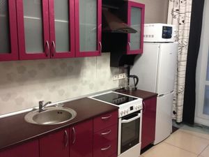 В квартире есть: раздвижной диван, кресло, кухня, холодильник, стиральная машина, плита, микроволновка