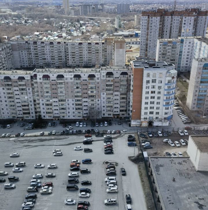 Большая бесплатная парковка возле дома на огороженной территории.