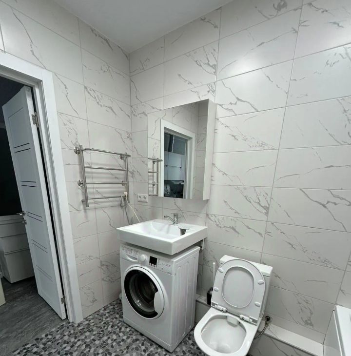 Квартира радует свежим евроремонтом и продуманной планировкой. Просторная кухня площадью 12 кв. м оснащена всей необходимой мебелью и техникой, включая холодильник,микроволновая печь и стиральную машину. В комнате также есть мебель и телевизор, гардеробная. Санузел совмещенный, оборудован ванной. Окна выходят во двор, поэтому в квартире тихо и уютно.