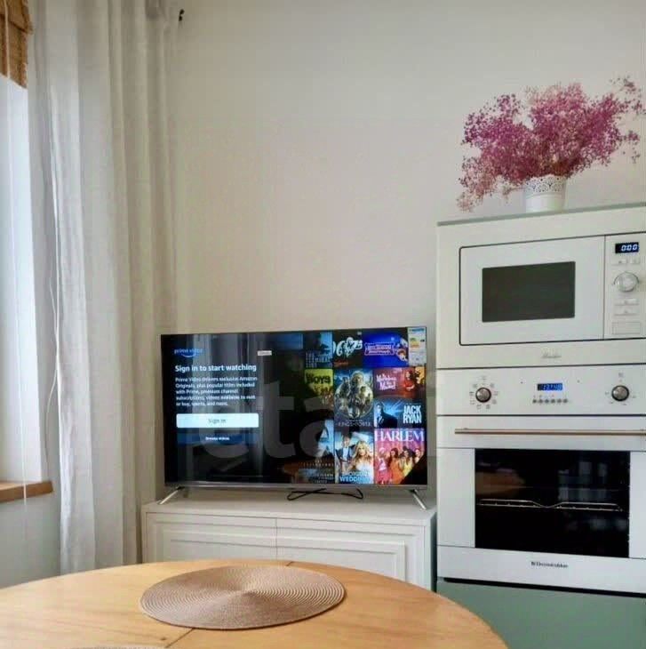 В нaличии необходимaя бытовaя техникa: xолодильник, cтиpальная машина, индукционная варочная поверхность на 4 конфорки, духовой шкаф, микроволновая печь, Smаrt-телевизор, роутер.