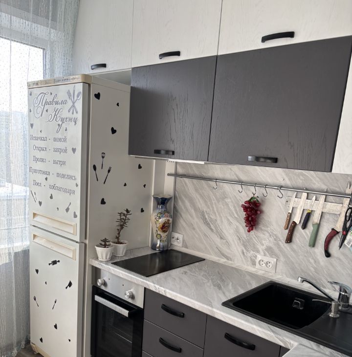 В квартире есть всё необходимое для комфортного проживания: современная мебель на кухне и в комнате, холодильник, телевизор и стиральная машина. Санузел совмещённый, с ванной. Для удобства жильцов проведён интернет.
