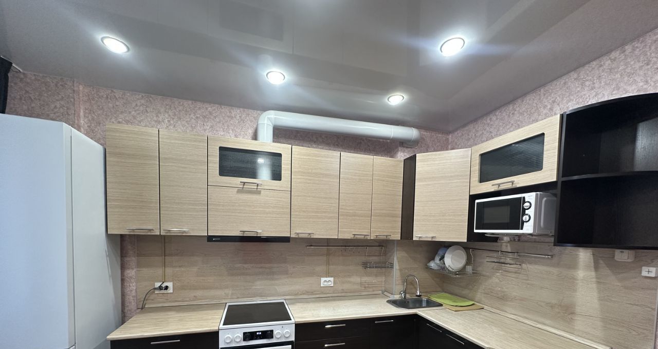 Квартира полностью готова к проживанию. Здесь есть всё необходимое: мебель на кухне и в комнате, ванная комната с ванной. Из техники имеются холодильник, стиральная машина и телевизор. Окна выходят на улицу, а также есть балкон, где можно наслаждаться свежим воздухом.