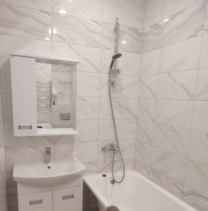Сдаётся впервые полноценная однокомнатная квартира с ремонтом в новостройке. Новая мебель (диван с ортопедическим основанием, письменный/ коммьютерный стол, стелаж, журнальный столик). Кухня оборудована всем необходимым (кухонный гарнитур, встроенные плита, духовка, вытяжка, высокий холодильник, обеденный стол и стулья, чайник, фильтр-кувшин). В ванной комнате новая "умная" стиральная машина, новая сантехника). Полностью оборудованная гардеробная комната.
