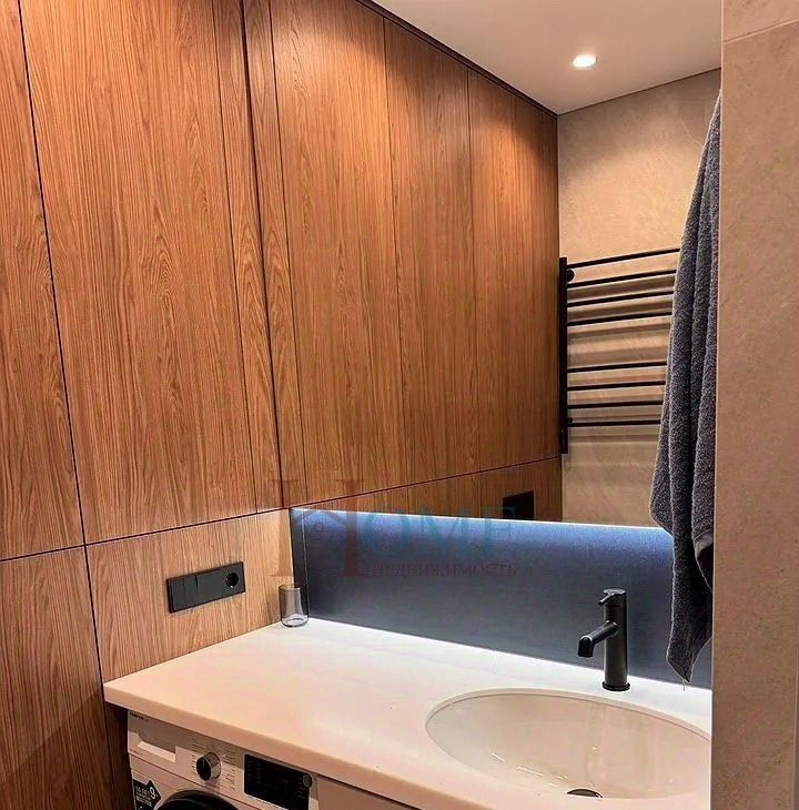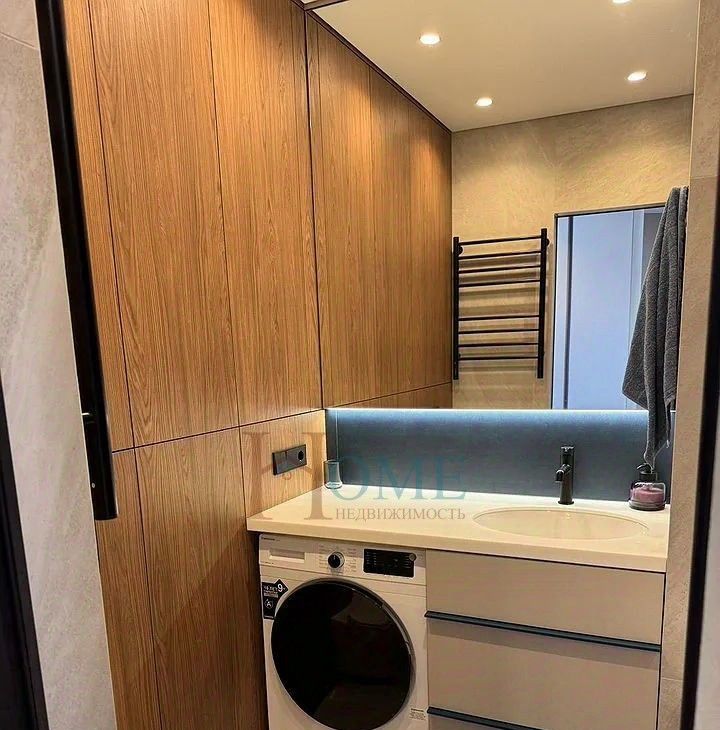 Санузел совмещенный, оформлен в современном стиле с качественной сантехникой. В прихожей предусмотрены вместительные шкафы для хранения вещей.