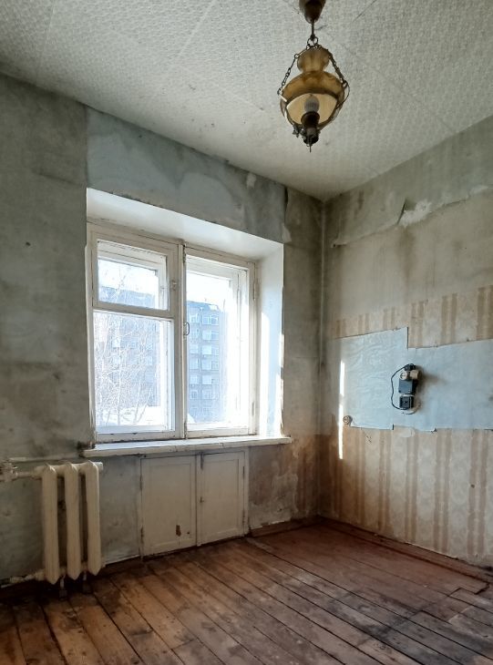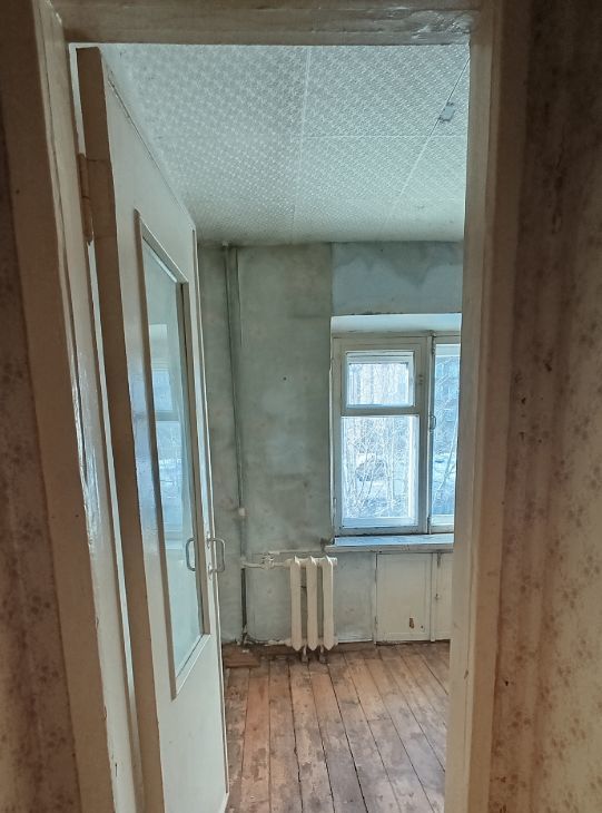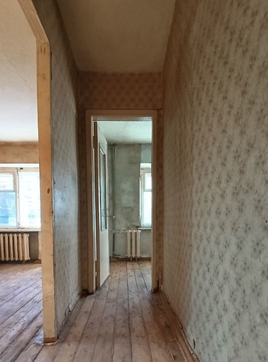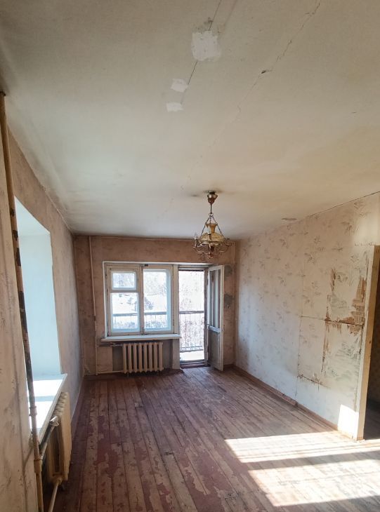 Все лишнее из квартиры убрано чтобы сразу приступить к ремонту. Деревянный пол в очень хорошем состоянии(на фотографиях остатки краски).