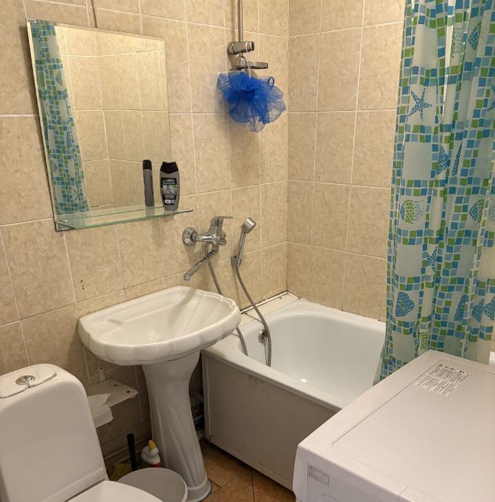 В квартире есть все необходимое для комфортного проживания: холодильник, телевизор, стиральная машина. Мебель расположена на кухне и в комнате, поэтому можно сразу въехать и жить без дополнительных затрат. Санузел совмещенный, с ванной.