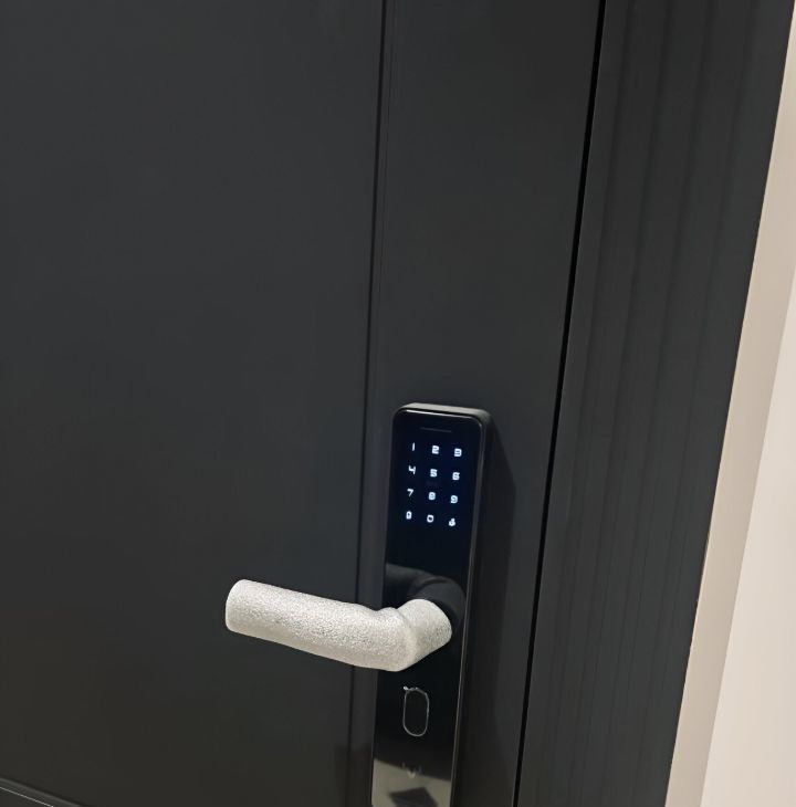 Bвполнена подготовка под кондиционеры. На входной двери в квартиру электронный замок.