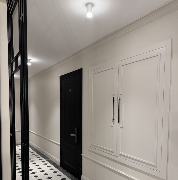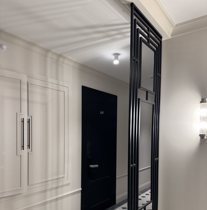 В квартире сделана подготовка под кондиционеры. На входной двери в квартиру электронный замок.