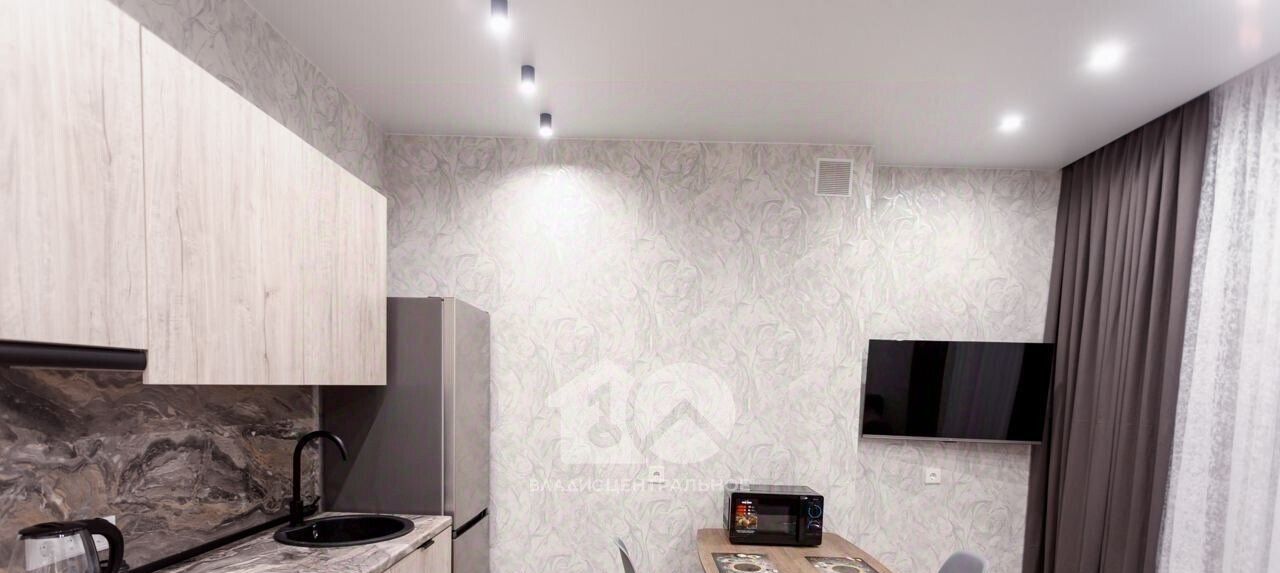 Общая площадь квартиры составляет 45 кв. м, из которых 22 кв. м — жилая площадь, а 20 кв. м — просторная кухня. В квартире есть балкон, а окна выходят на улицу. Квартира оснащена евроремонтом, что позволяет сразу заселиться без дополнительных вложений.