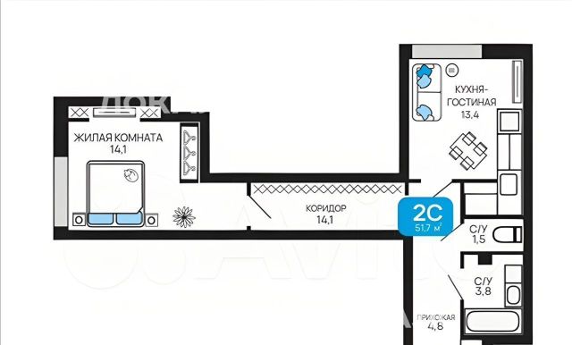 2-к кв. Новосибирская область, Новосибирск Сухарная ул., 96/2 (59.8 м²)